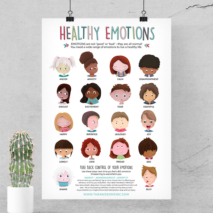 Teaching our kids to be aware of their emotions, how they feel in the body and skills to self-manage and self-soothe are the themes of our Emotional Warriors products. This handy HEALTHY EMOTIONS chart will aid your child in learning important life skills that build emotional resilience.